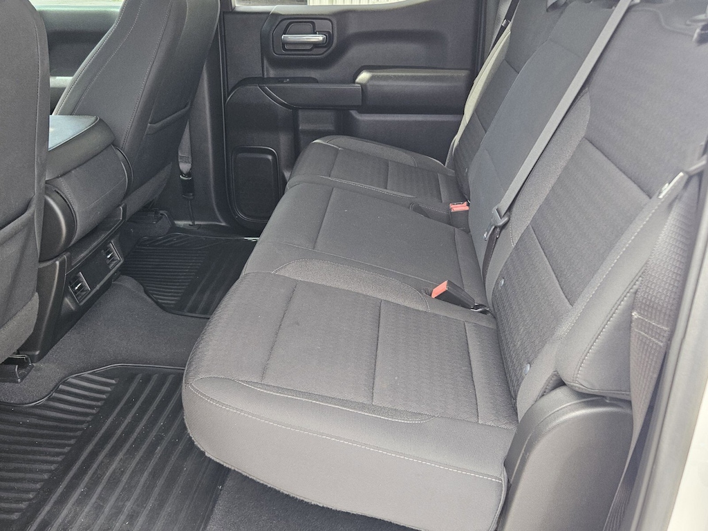 WHEELS, 20" X 9" (50.8 CM X 22.9 CM) BRIGHT SILVER PAINTED ALUMINUM (STD), TRANSMISSION, 8-SPEED AUTOMATIC, ELECTRONICALLY CONTROLLED with overdrive and tow/haul mode. Includes Cruise Grade Braking and Powertrain Grade Braking (STD), TIRES, 275/60R20 ALL-SEASON, BLACKWALL (STD), SUMMIT WHITE, SEATS, FRONT 40/20/40 SPLIT-BENCH with covered armrest storage and under-seat storage (lockable) (STD), REAR AXLE, 3.42 RATIO, NOT EQUIPPED WITH USB PORTS, REAR, SEE DEALER FOR DETAILS (Beginning with the start of production certain vehicles will be forced to include (RFO) Not Equipped with USB ports rear.), NOT EQUIPPED WITH STEERING COLUMN LOCK, SEE DEALER FOR DETAILS (Certain vehicles built on or after 4-4-2022 will be forced to include (R7N) Not Equipped with Steering Column Lock, which removes Steering Column Lock.), JET BLACK, CLOTH SEAT TRIM, ENGINE, 2.7L TURBO HIGH-OUTPUT (310 hp [231 kW] @ 5600 rpm, 430 lb-ft of torque [583 Nm] @ 3000 rpm) (STD). This Chevrolet Silverado 1500 has a dependable Turbocharged Gas I4 2.7L/166 engine powering this Automatic transmission.