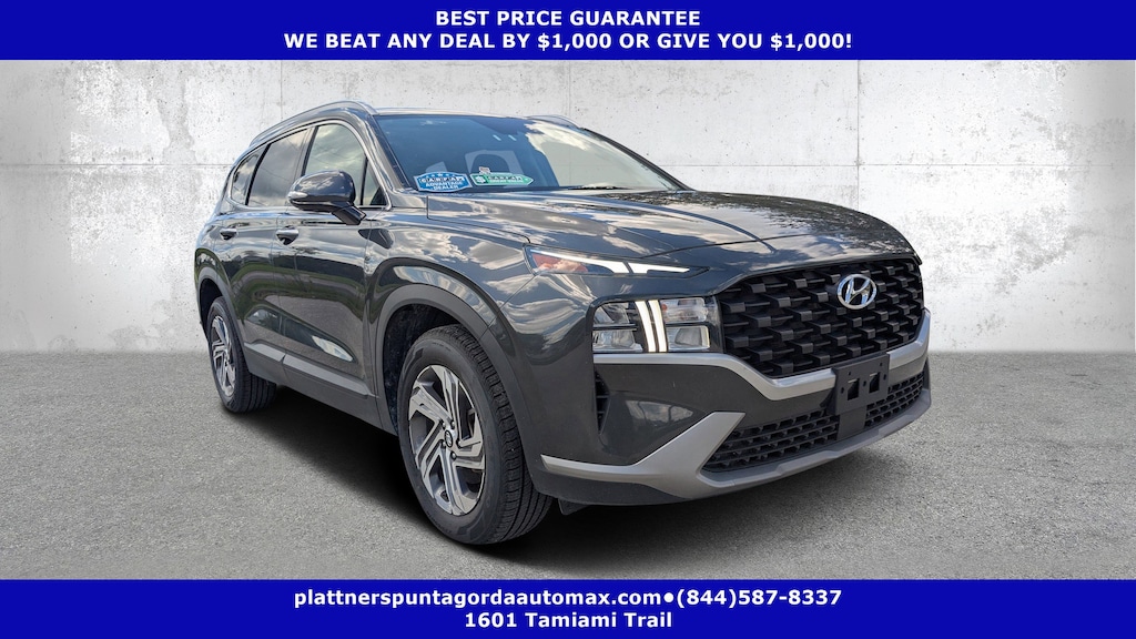 OPTION GROUP 01 -inc: standard equipment, Wireless Phone Connectivity, Voice Activated Dual Zone Front Automatic Air Conditioning, Variable Intermittent Wipers, Valet Function, Turn-By-Turn Navigation Directions, Trunk/Hatch Auto-Latch, Trip Computer, Transmission w/Driver Selectable Mode, Tracker System. This Hyundai Santa Fe has a dependable Regular Unleaded I-4 2.5 L/152 engine powering this Automatic transmission.